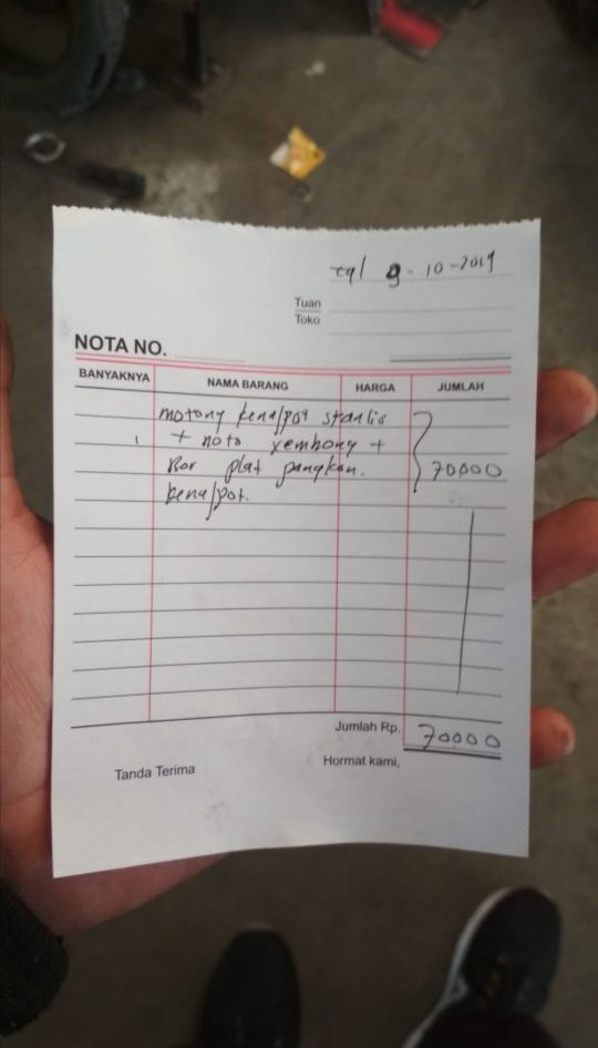 Sering bingung untuk membuat nota tagihan untuk pelanggan kamu? Suatu hari di awal 2014 mobil keluarga ini dipakai . "kami tidak mematok tarif mahal untuk proses perbaikan bodi mobil untuk kembali ke kondisi seperti semula. Biaya ini sudah termasuk pengecatan pada bodi yang rusak tersebut, tapi jenis cat yang dipakai juga mempengaruhi biaya perbaikannya, terang . Paket order cetak bengkel malita :
