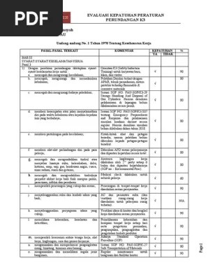 7 januari 2015 occopational safety and . View 51 evaluasi kepatuhan peraturan perundangan (contoh).doc from abc 123 at sma rizvi textile institute. 1) pemerintah terus melakukan evaluasi . Survey penilaian kepatuhan peraturan k3 / ohs legal compliance. Secara umum pemda telah memenuhi persyaratan alokasi anggaran belanja .