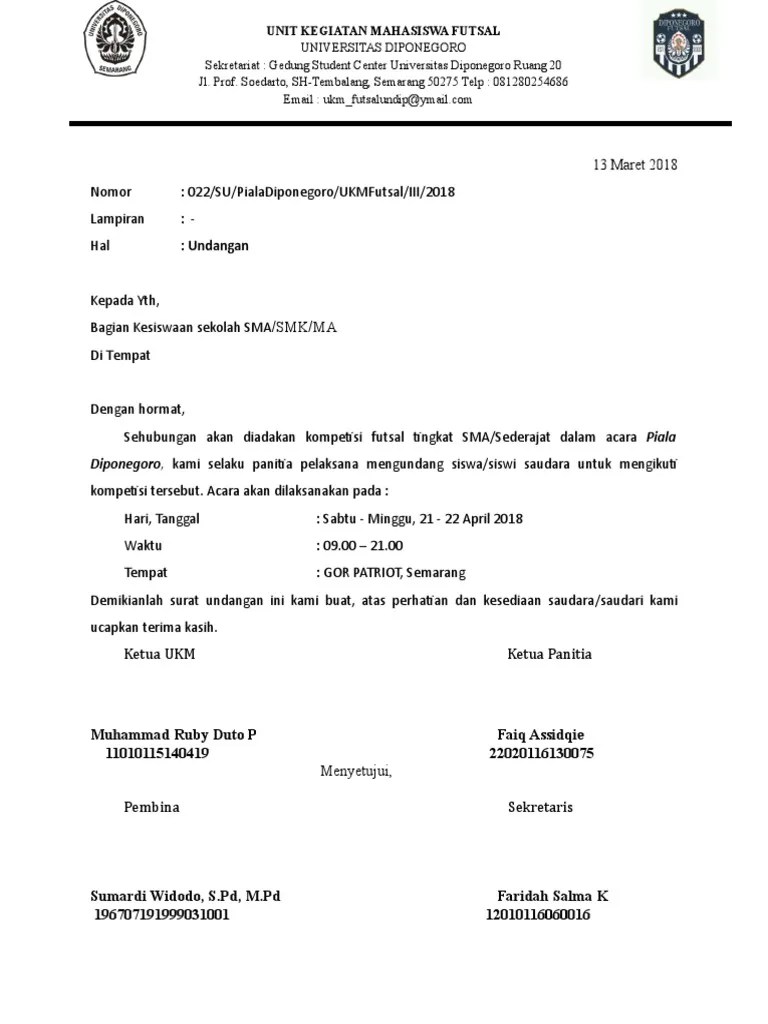 Surat undangan kejuaraan futsal smp se dki jakarta contoh surat.